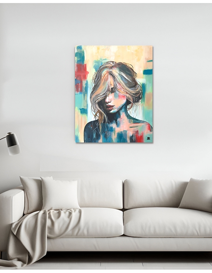 Ce tableau coloré est une fenêtre ouverte sur l'âme, un reflet de nos propres émotions et questionnements. Il est une invitation à la réflexion, à l'introspection, nous rappelant la beauté et la complexité de notre monde intérieur. Laissez-vous emporter par les émotions qu'elle suscite ! Idéal pour insuffler un esprit de modernité et de féminité à votre espace de vie. Cette œuvre d'art est la pièce parfaite pour embellir votre salon, une chambre ou un bureau. Les amateurs d'art et les collectionneurs seront charmés par la qualité et l'originalité de cette œuvre d'art à prix abordable. C'est une occasion unique d'enrichir sa collection d'art avec un tableau moderne qui incarne le talent et la vision artistique de Nadège.